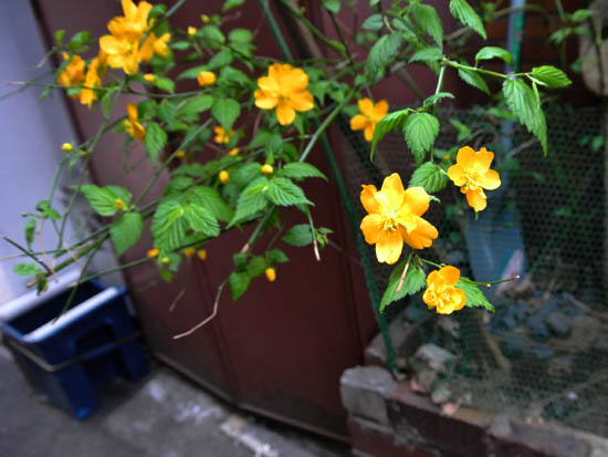 路地裏に咲いていた気の早い山吹。
