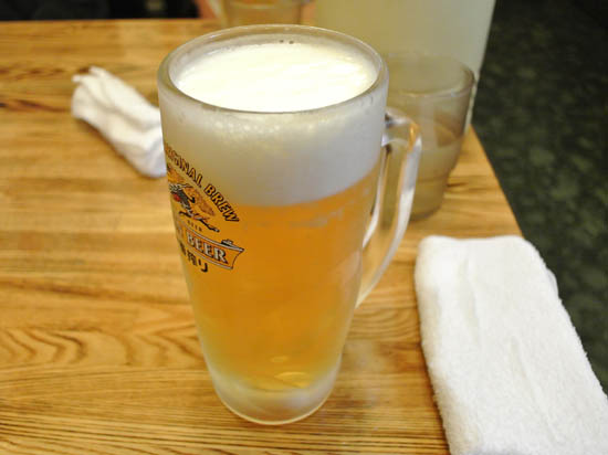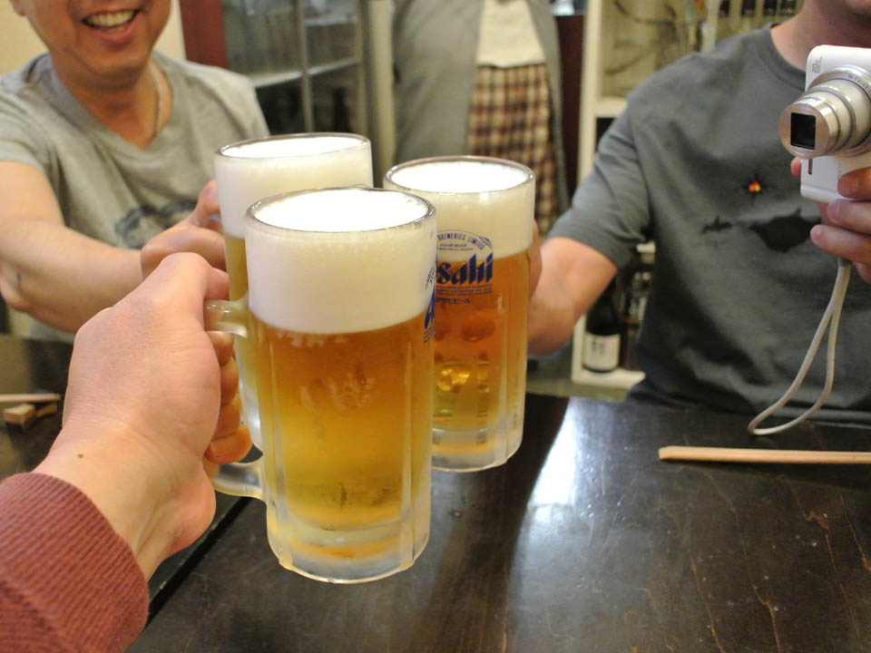 席が一人分空いたので、まずは僕が一足先にご入店、ビールと煮込みもらい、フライングスタート♪