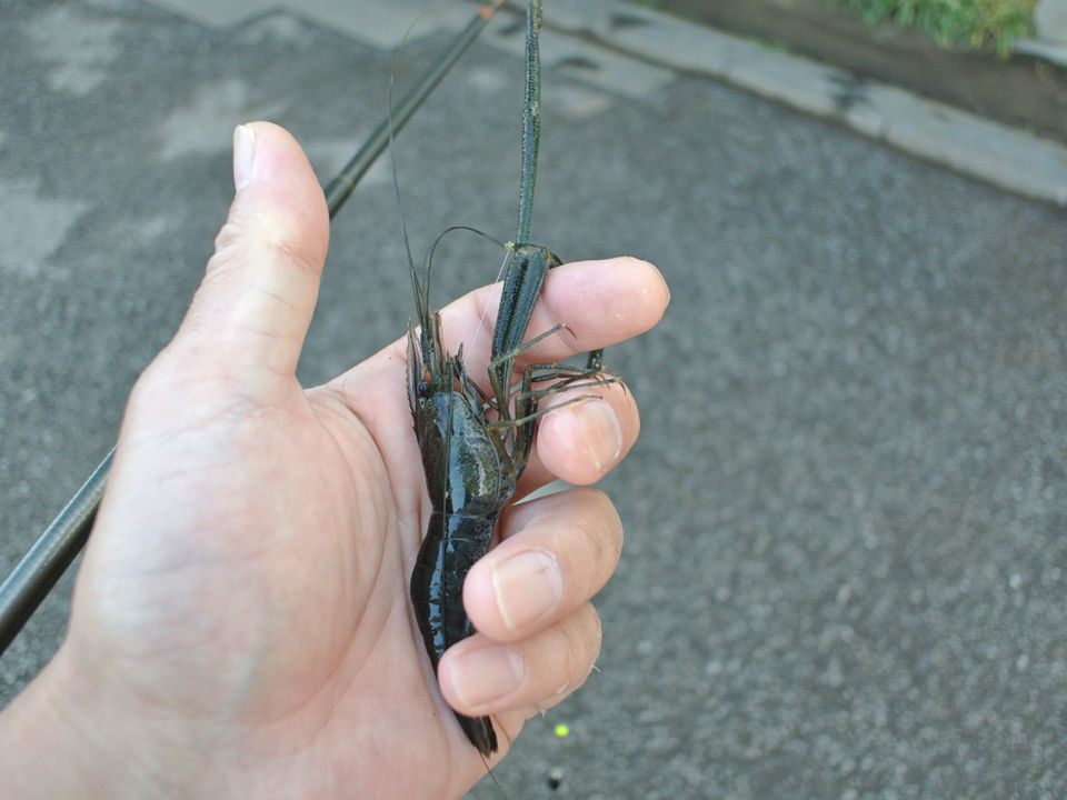 暫くは蝦の姿が見えず苦戦、やっとみっけた大型の目の前へ仕掛けをプレゼントすると、浮きをモゾモゾと揺らし、しめしめ・・・・