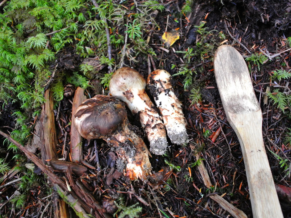イグチ類やアブラシメジ系は腰籠に入れる前に、極力落ち葉などを払い落し、石突きなんかもカットした方が、始末が楽になる。