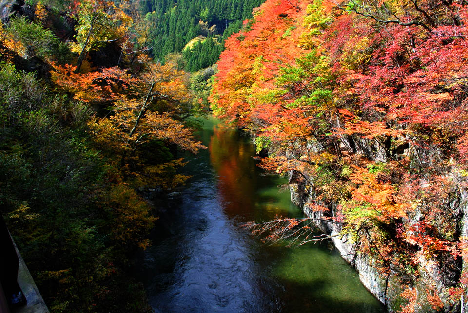更にズンドコ進み、県道63を左折し、本日のメインイベント照葉峡はズバリ紅葉真っ盛り。