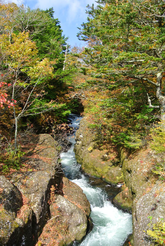 片品川に掛かる橋からいつものゴルジュをパチリ。 岩魚達はお留守でした。