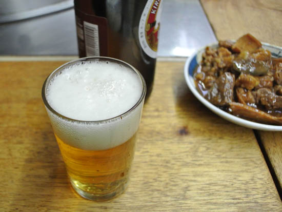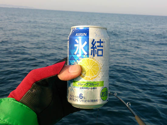 本来なら最初の一尾を釣り上げてから飲るんだけどね、釣れねェんだもん。