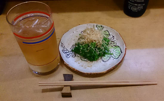 帰宅後いつものこたな木へ行き、こないだのセリをお浸しにしてもらい・・・