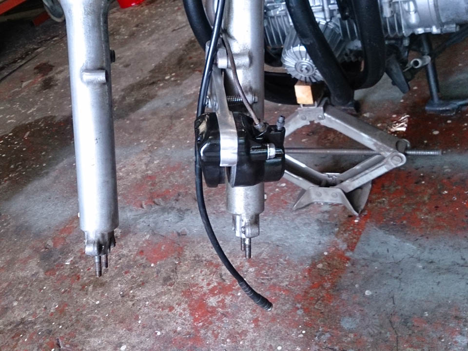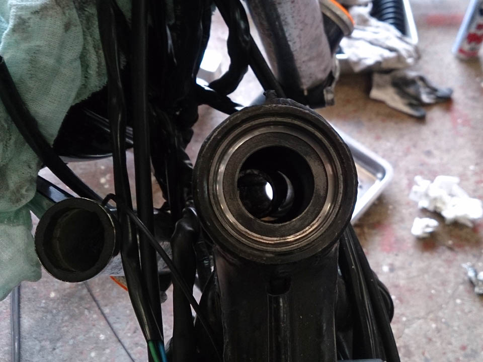 左フォーク同様、ブレーキホースと蛇腹、メーターワイヤーが無ければ、ウイリーでボトムケースが抜けちゃう状態だった訳だ。 恐ろしい。