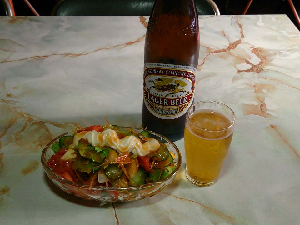 最初の生ビールを飲み干した頃、呑み朋山羊氏が偶然やって来た。