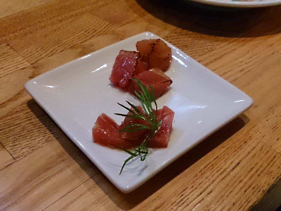 さいの目にカットして炙ったヤツ、オリーブオイルで和えたヤツ。 これもまたウマし。