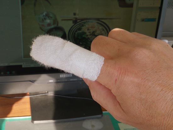 じつは土曜日に指を切ってしまい、アロンアルファで固めて二日間過ごしたら膿んでしまったらしく、この日医者へ駆け込み抗生物質を点滴してもらったんだな。