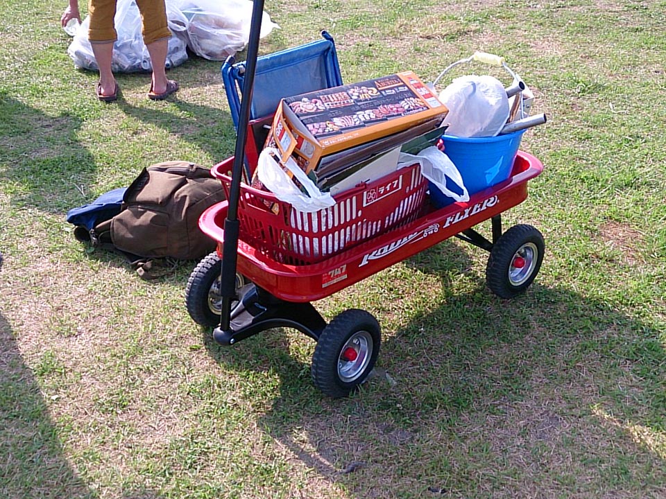 ノーマルよりチョイ太めのエアタイヤは石畳や砂浜でもへっちゃら、機材の運搬は至極ラクチンっした♪