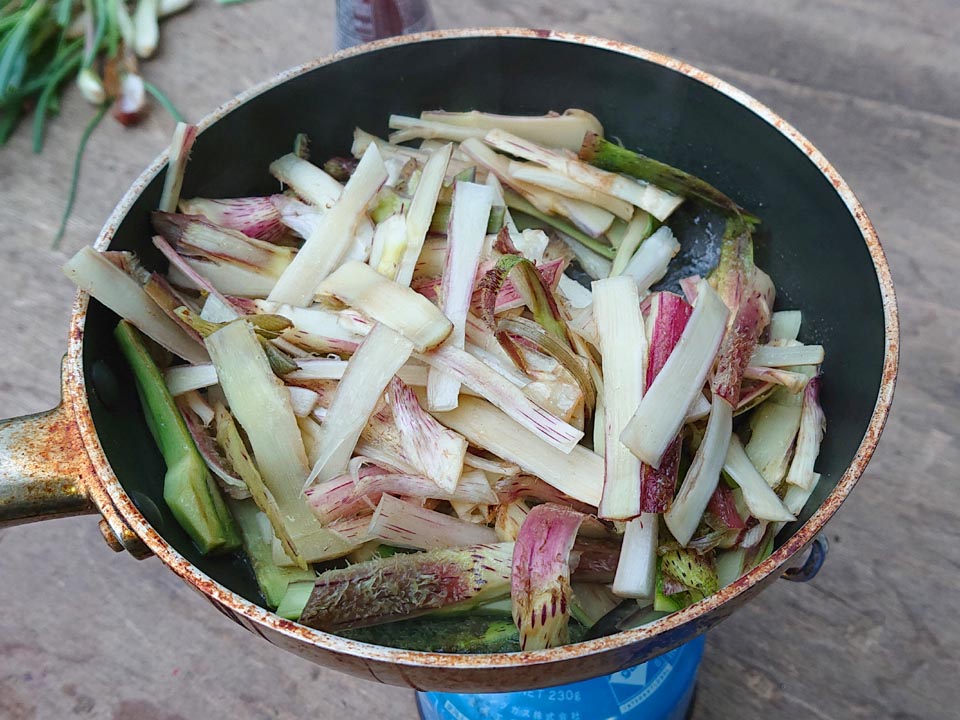 これはOsamuちゃんからおみやでもらったウドの皮で、僕がきんぴら作ってるところっす。