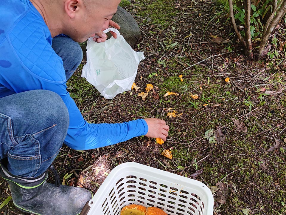 暫くするとアンズタケが見つかり、僕もニンマリ。