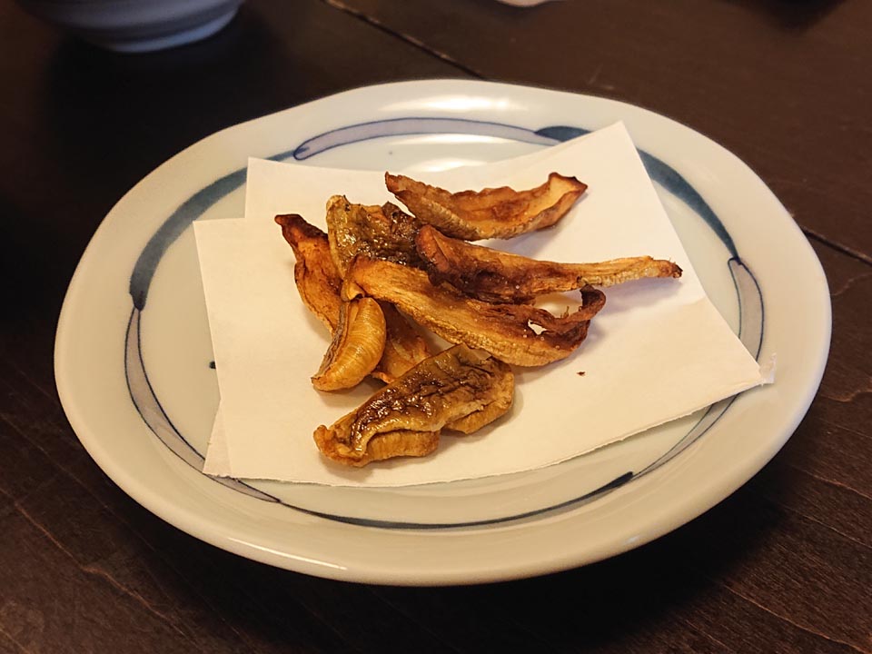 貴重なポルチーニ(ヤマドリタケ)は素揚げで塩振って頂きました。