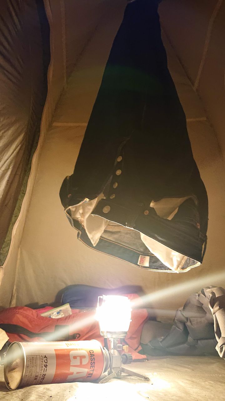 気付けばGパンがびしょ濡れで、思案の末に、ガスランタンで乾かす事に。