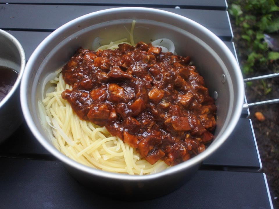 タマゴタケ・チチタケ・玉ねぎのスパゲッティ・ボロネーゼの出来上がり♪