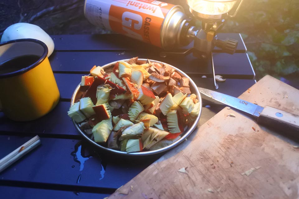 別メニューでチチタケとタマゴタケを微塵切り・・・・