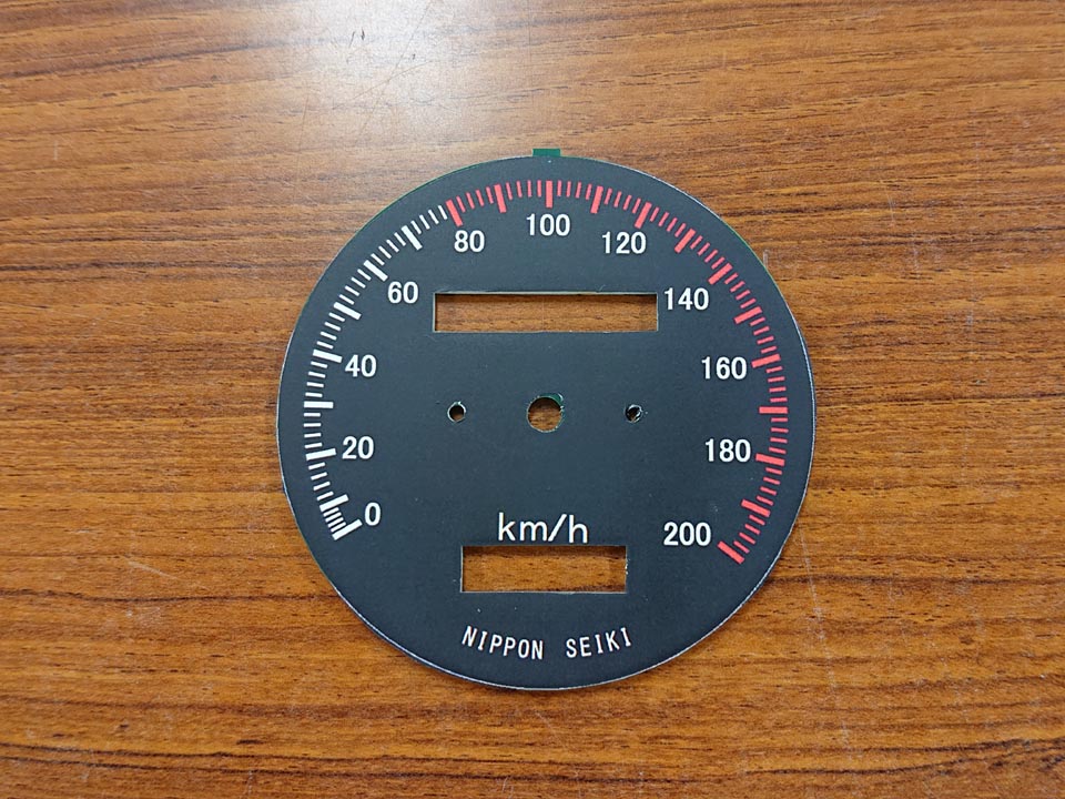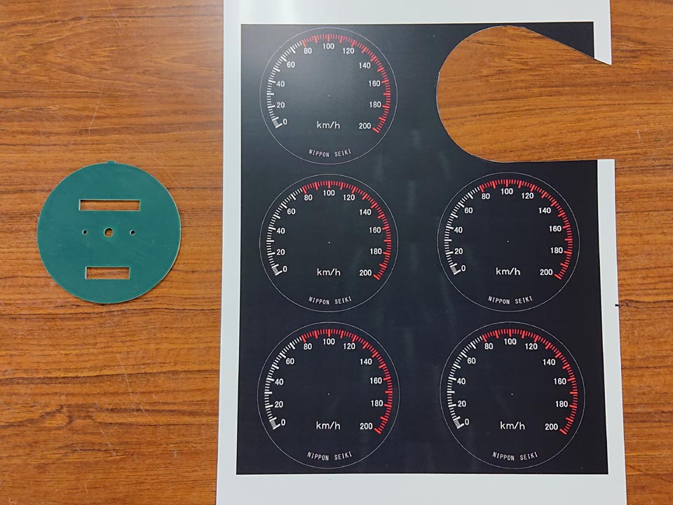 一旦文字盤の印刷をペーパーで落としてから、秘蔵の作り置きメーター文字盤ステッカーを引っ張り出し・・・・