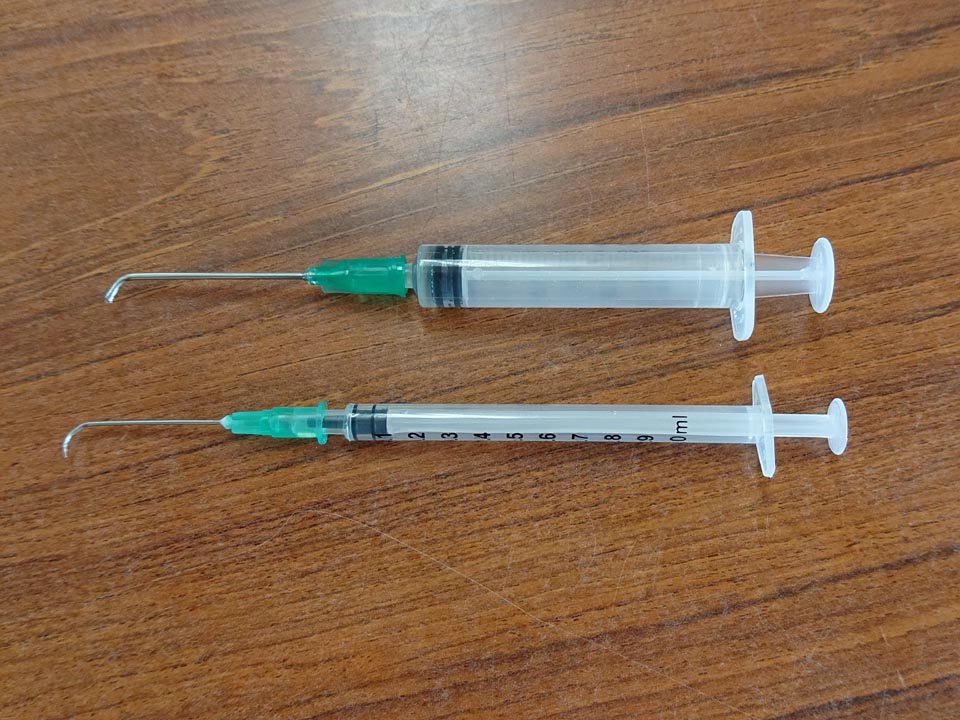 手持ちの細い針では粘度が高過ぎて圧送出来なかったが、太めの針を使ったら上手い事行きましたyo!