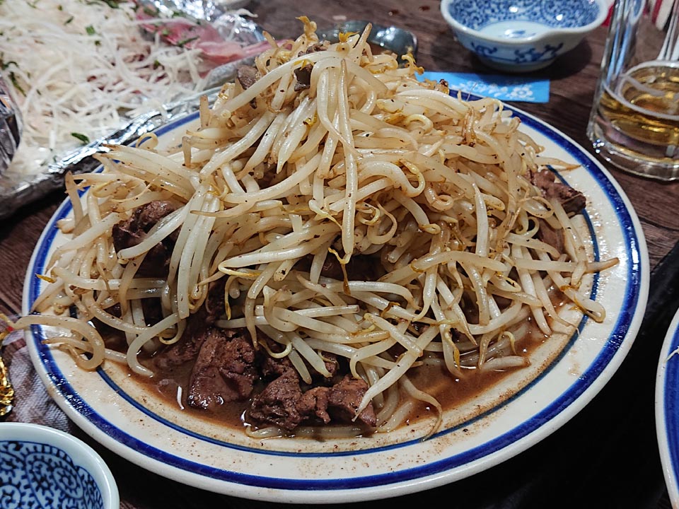 入店すると、既に呑み朋山羊氏がおり、小上がりの卓上にはおかずが沢山!