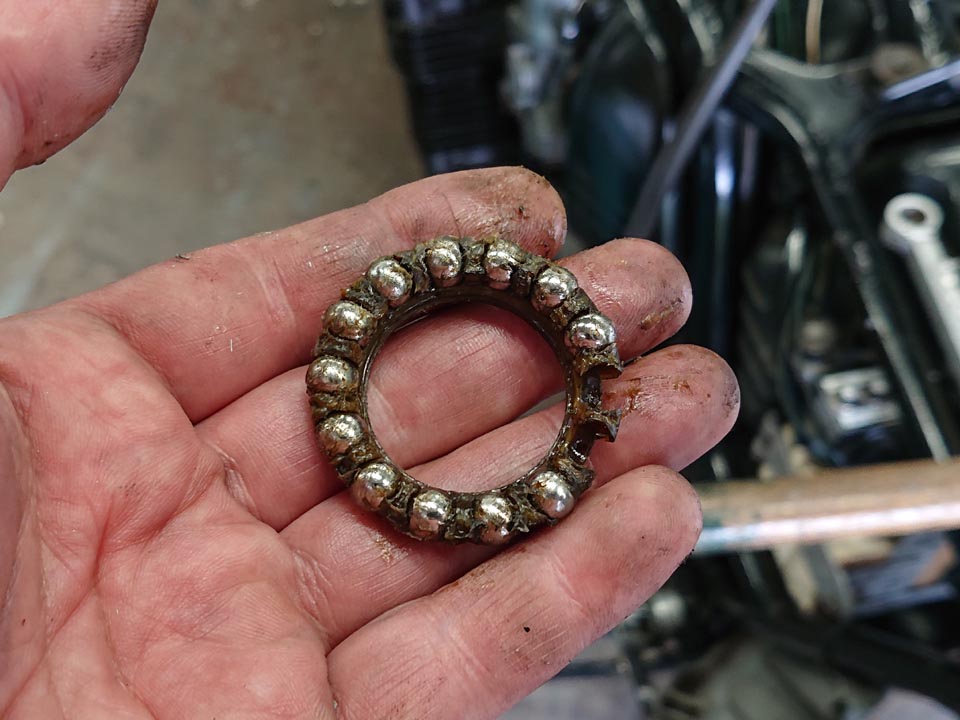 で、こないだの土曜日に、思い立って六発号のステムベアリングの様子を見てみた。