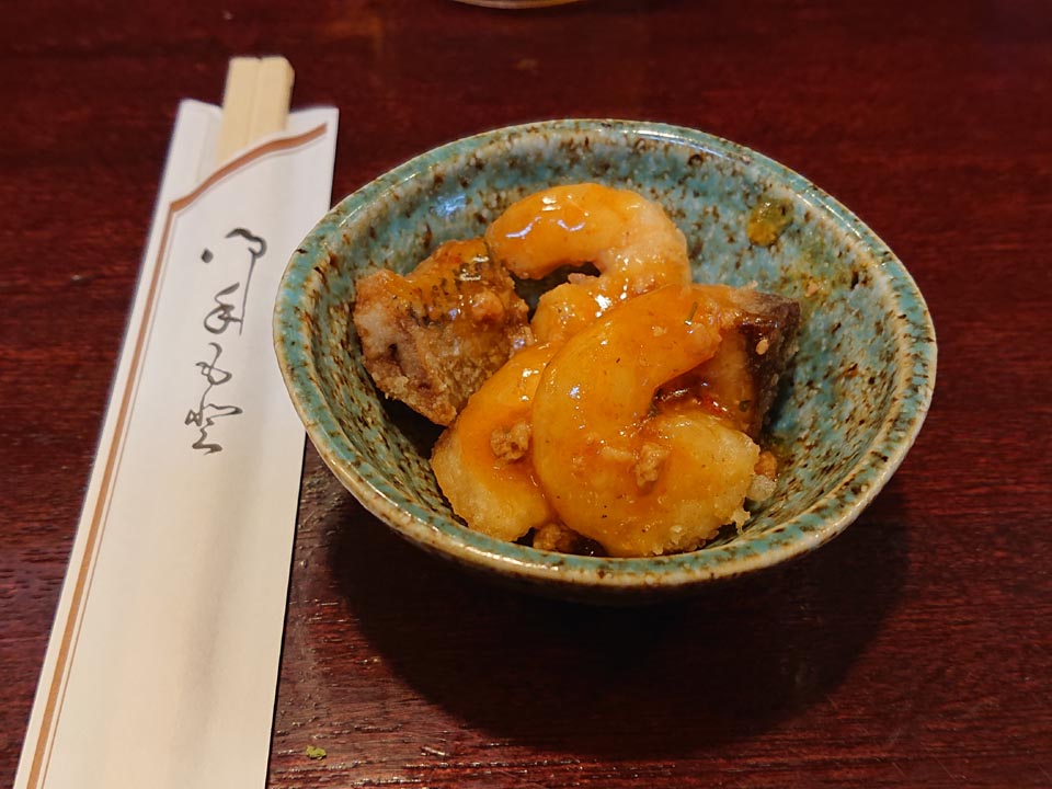 お通しは小海老と何かのあんかけマイウ♪