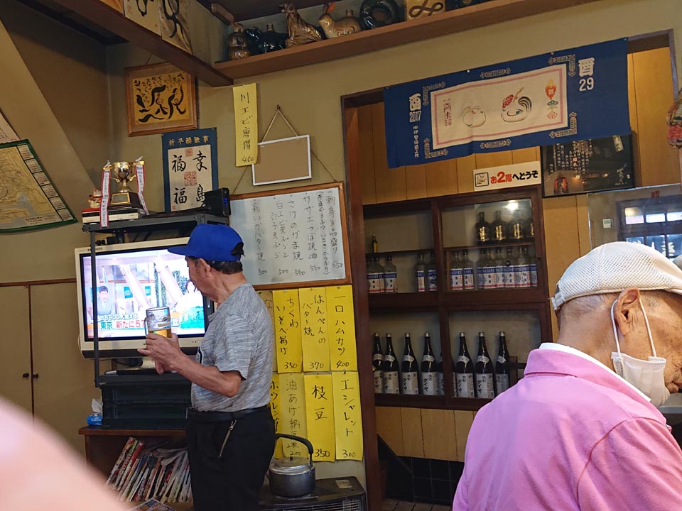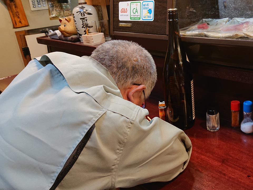 ご常連と思しき先輩、立ち飲みで落ち着きが無い(ワハハー)