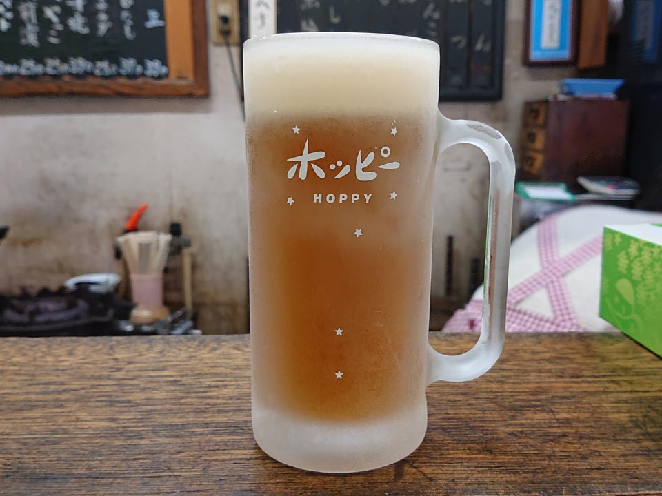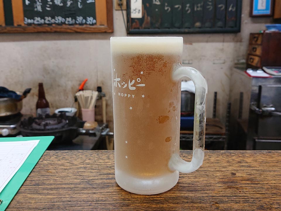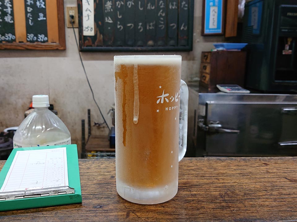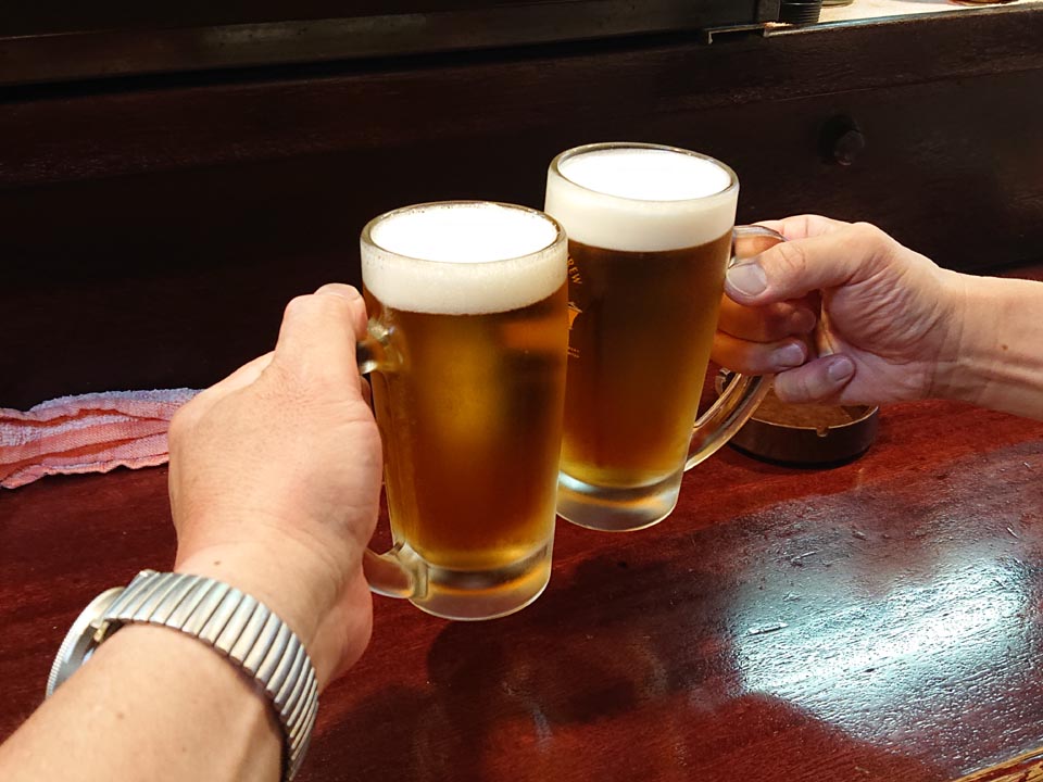 カウンター席にて、生ビールをもらい乾杯~♪