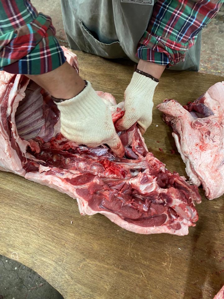 例によって脂身やら切れ端肉とかスジ肉、中落ち肉なんかを790g、包丁で叩いて微塵切りにしてね、