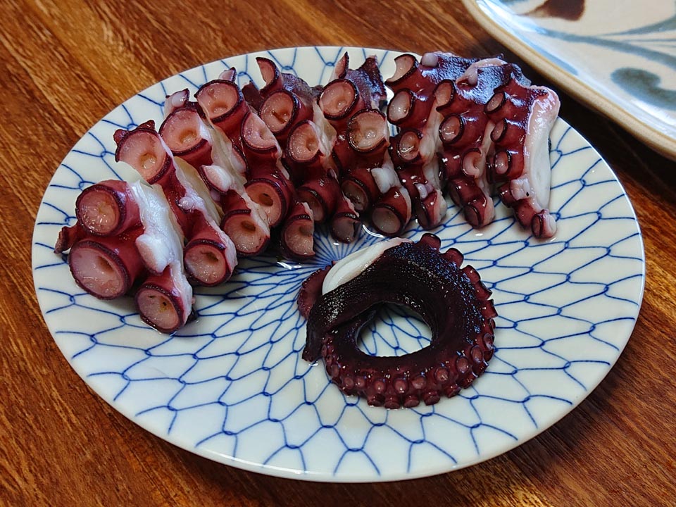 茹で上がったら酢蛸と刺身に。