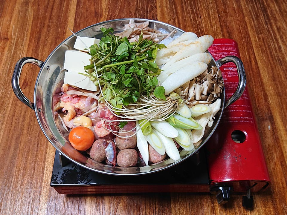 晩餐は秋田名物鶏かやき。