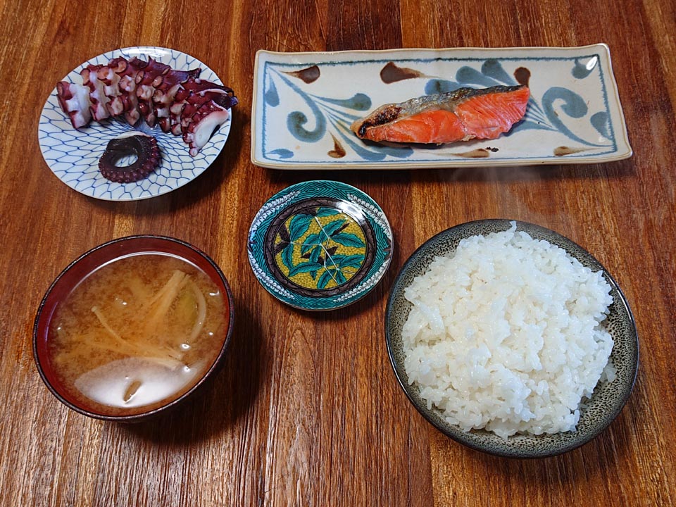 ブレックファーストは蛸刺し塩じゃけ定食。