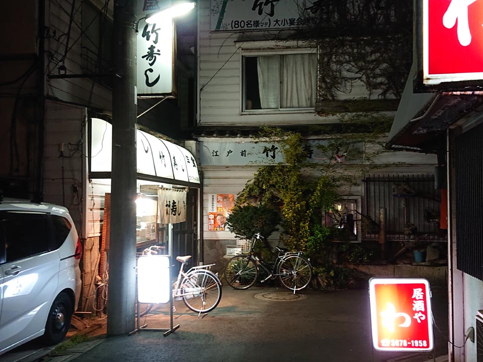 通称篠崎街道を渡った路地裏にある竹寿し。