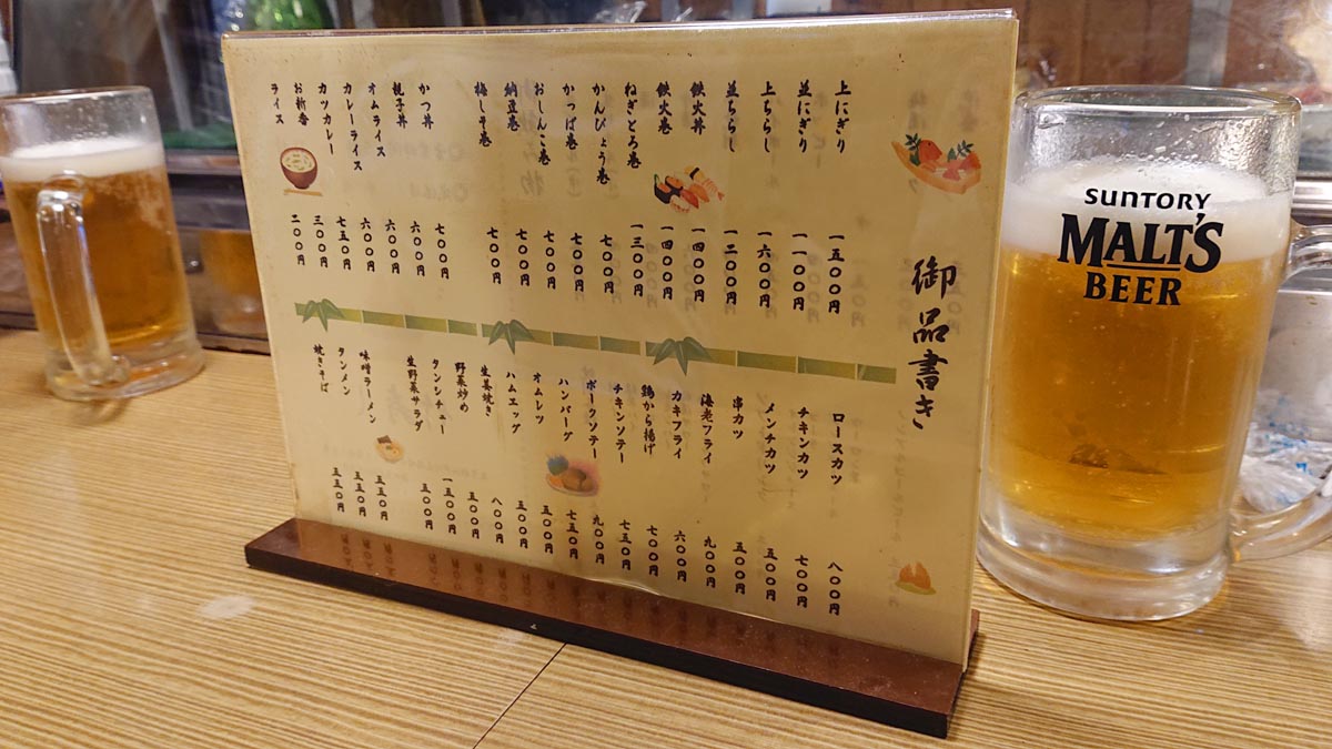 珍しく座敷の中にあるカウンターに腰掛けて、生ビールで喉を潤しながらメニューをば♪