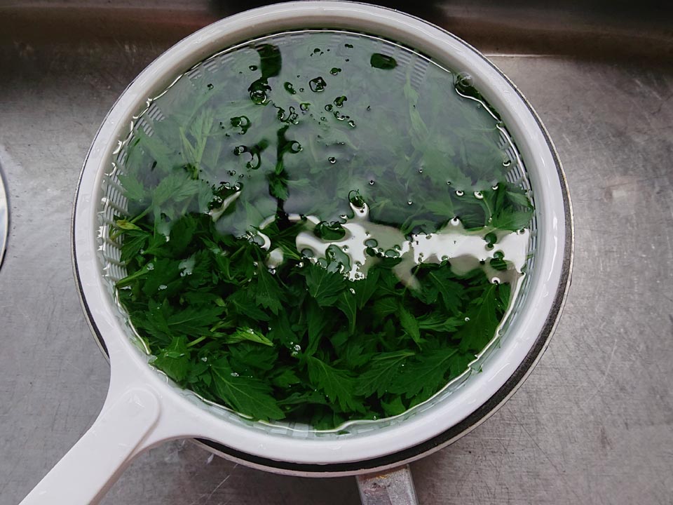 先日芹摘みに行った時に、ついでに摘んで来たよもぎの若葉。