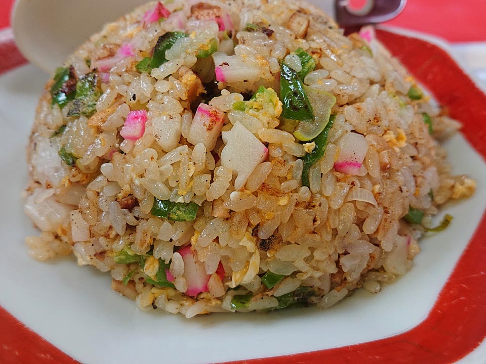 一般的に五目チャーハンと言えば各種具がトッピングされてるもんだが、福々亭のヤツは全部混ぜ式。