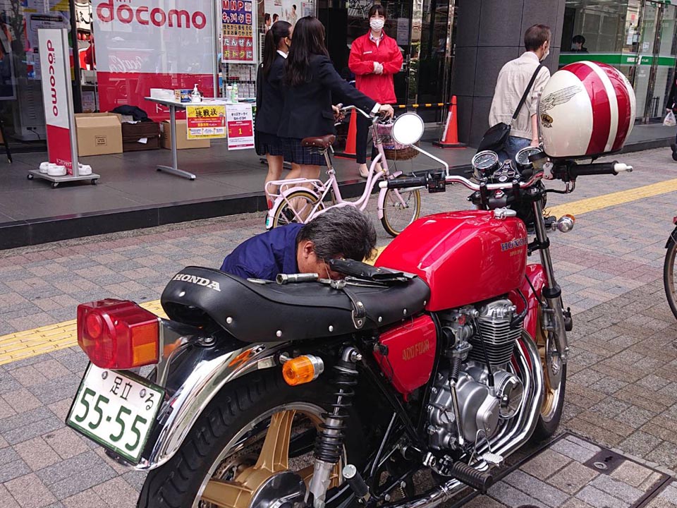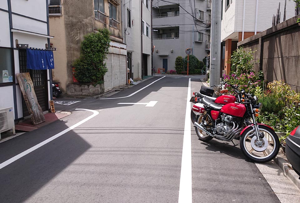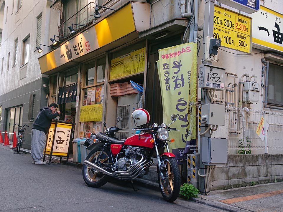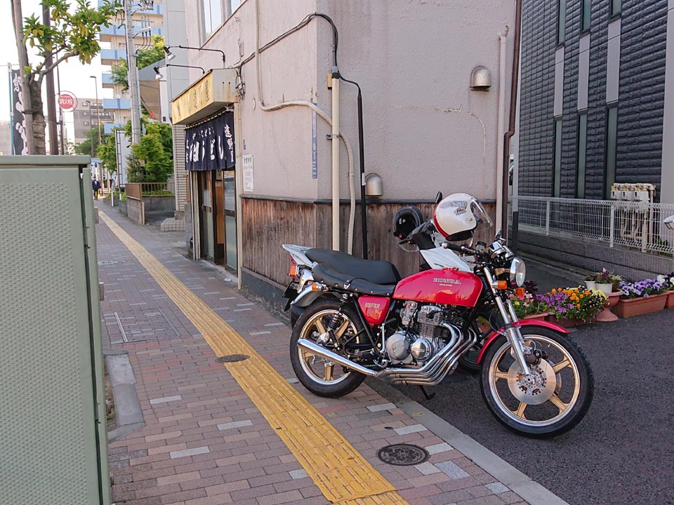 同日、CB400FOUR OWNERS CLUB員のキムちゃんがやって来たので、入谷角萬までランチへ。