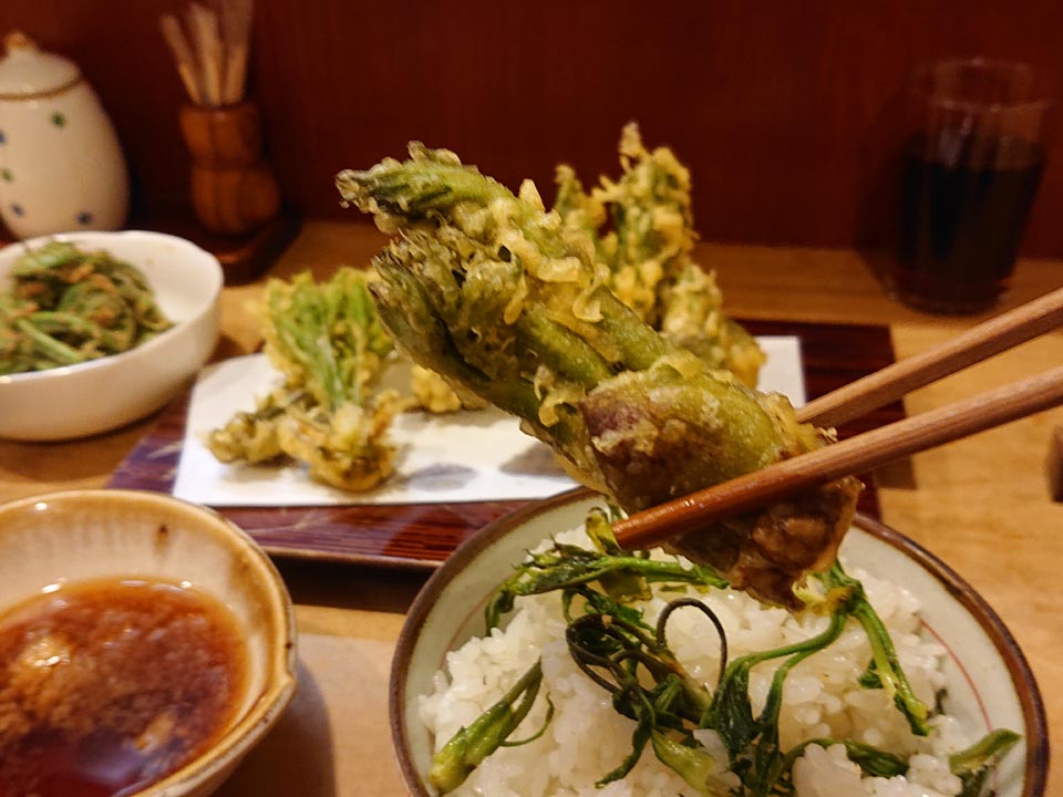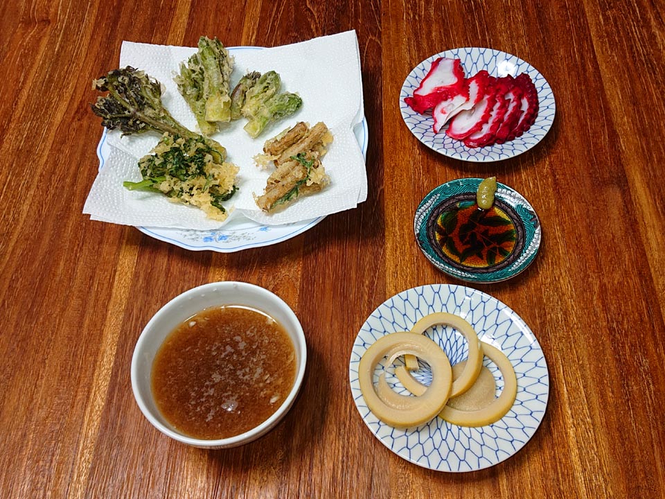 秋田から送らさって来た山菜もまだあるので、天ぷらに。