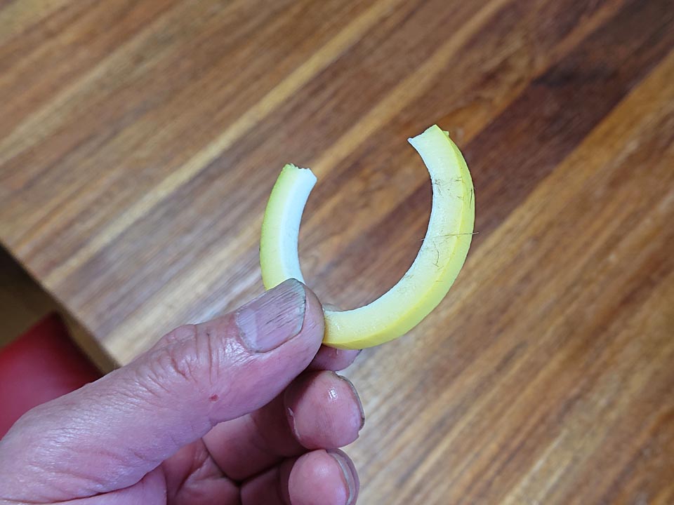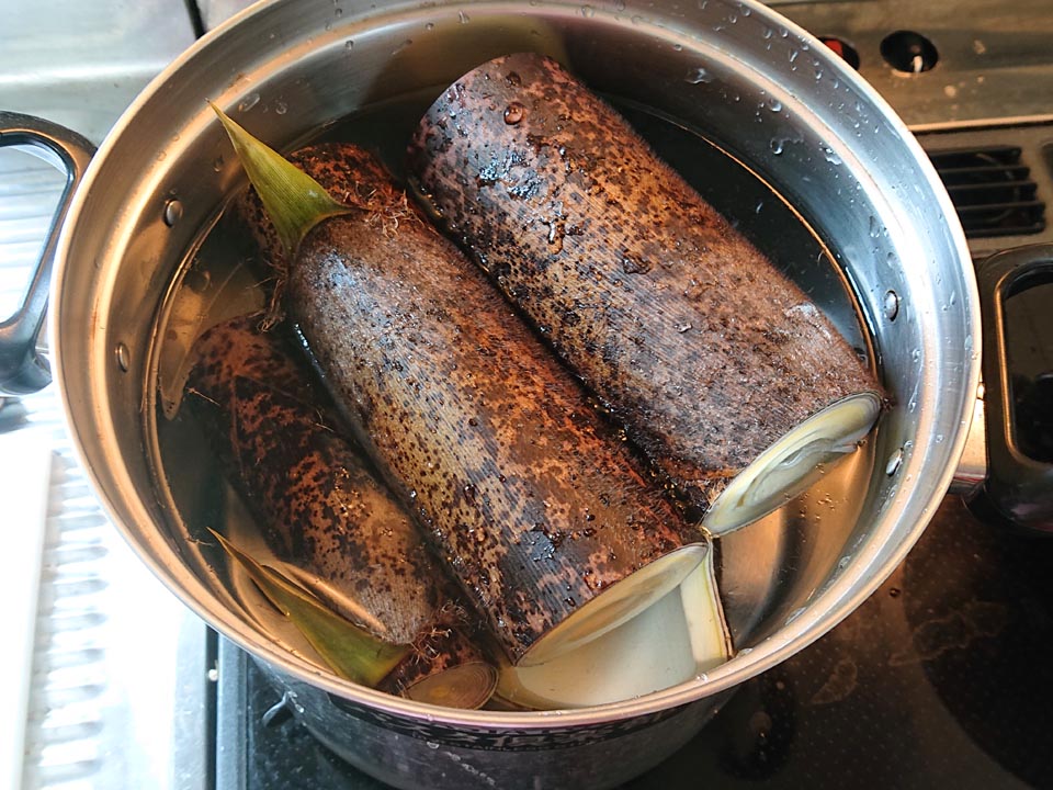 これから出て来る淡竹や真竹など、ポッキリ折り採る系の筍の食感を孟宗竹で再現してみました。