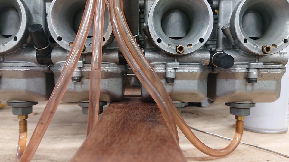 今回搭載したCRSキャブがね、元はCB500BENENDA号のために誂えたヤツなんだが、どーにもこーにも調子が出ないもんで、いんぐりもんぐり・・・・