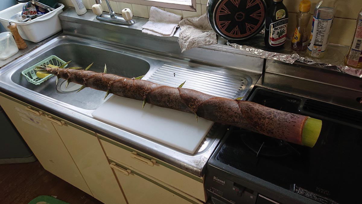 先日千葉の山で採って来た育ち過ぎの筍ね。