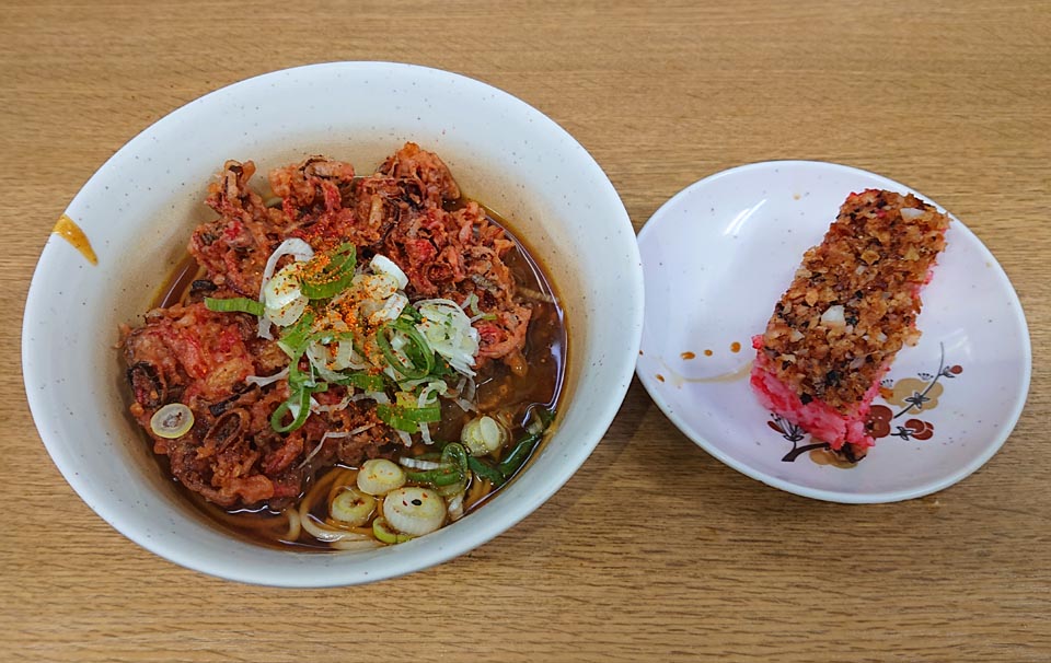 仕方がないので小海老かき揚げそば+鮭おにぎり。
