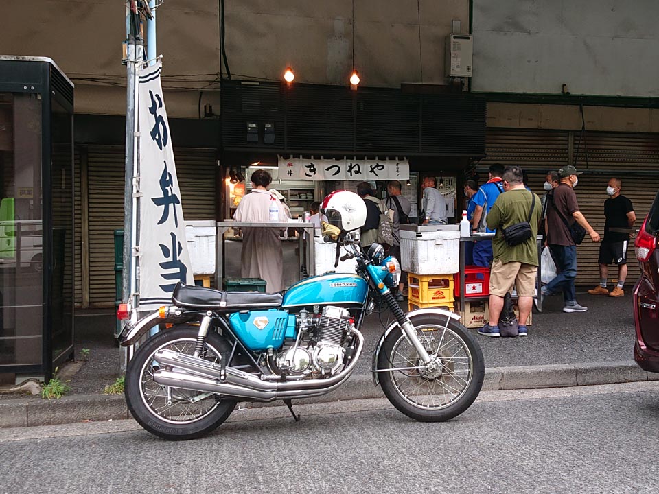 砂号をガォォォン!ズヴァーー!と吠えさせて、築地場外きつねや到着。