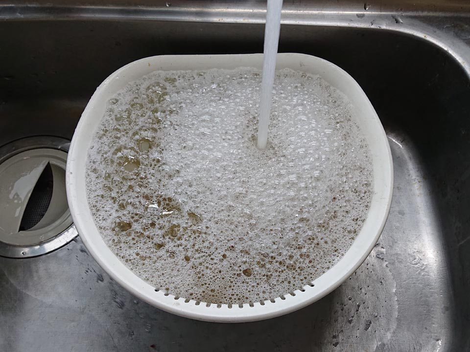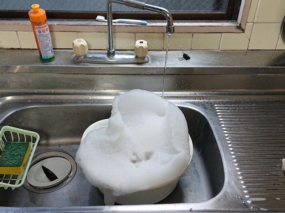 手始めに10回ほど濯いだんだが、泡が頑固だねぇ。