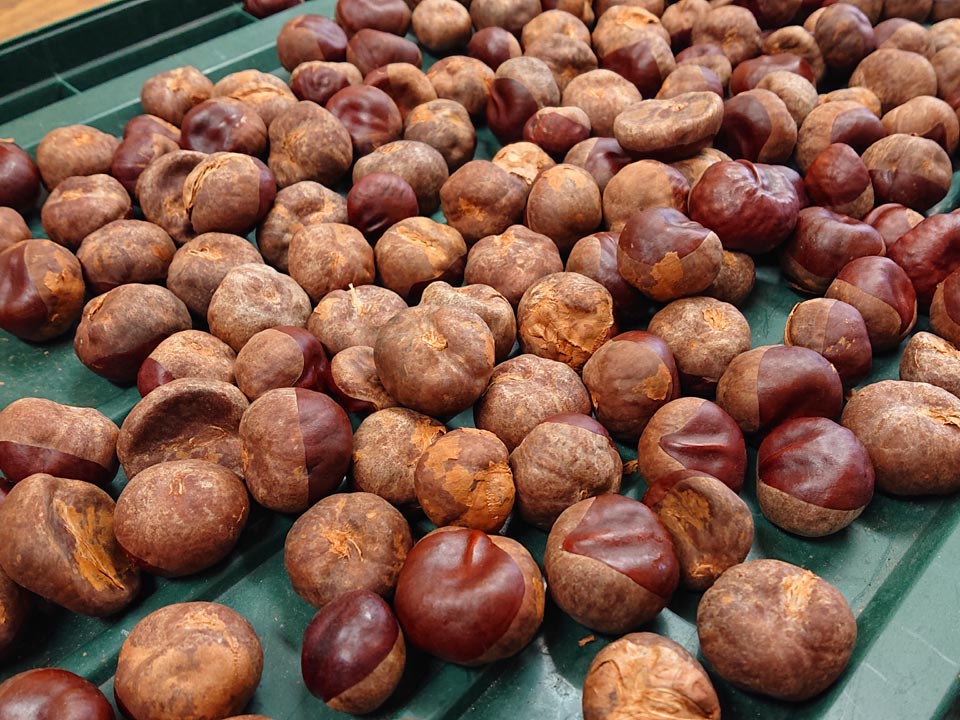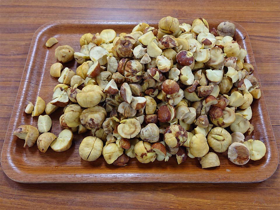 丸々としていた栃の実は天日干しにより大分凹んだね。
