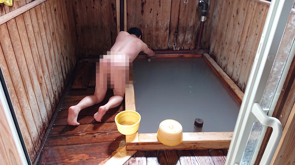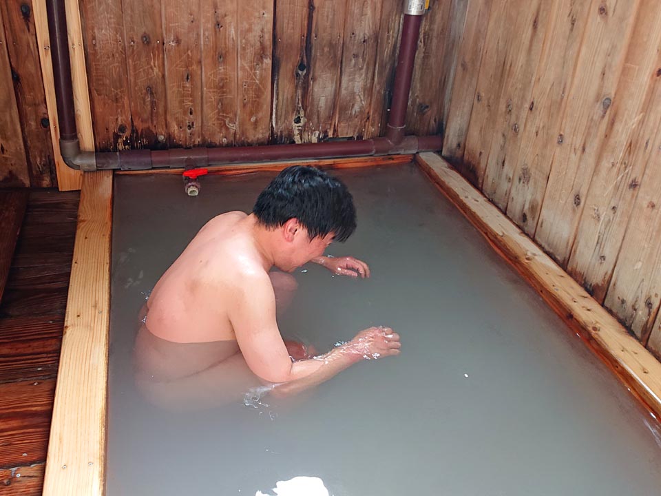 ぬるぬるっとした肌触りと硫黄臭で、否が応にも温泉気分増幅♪