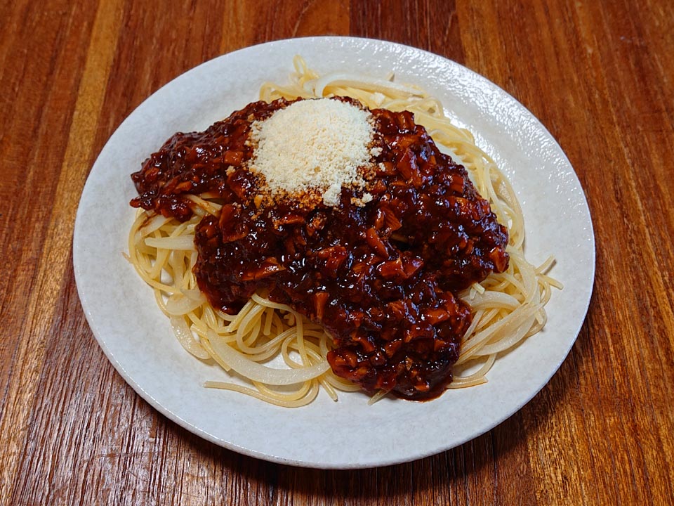 日曜日のブッレクファーストがアンズタケの微塵切りを混ぜ込んだボロネーゼ。