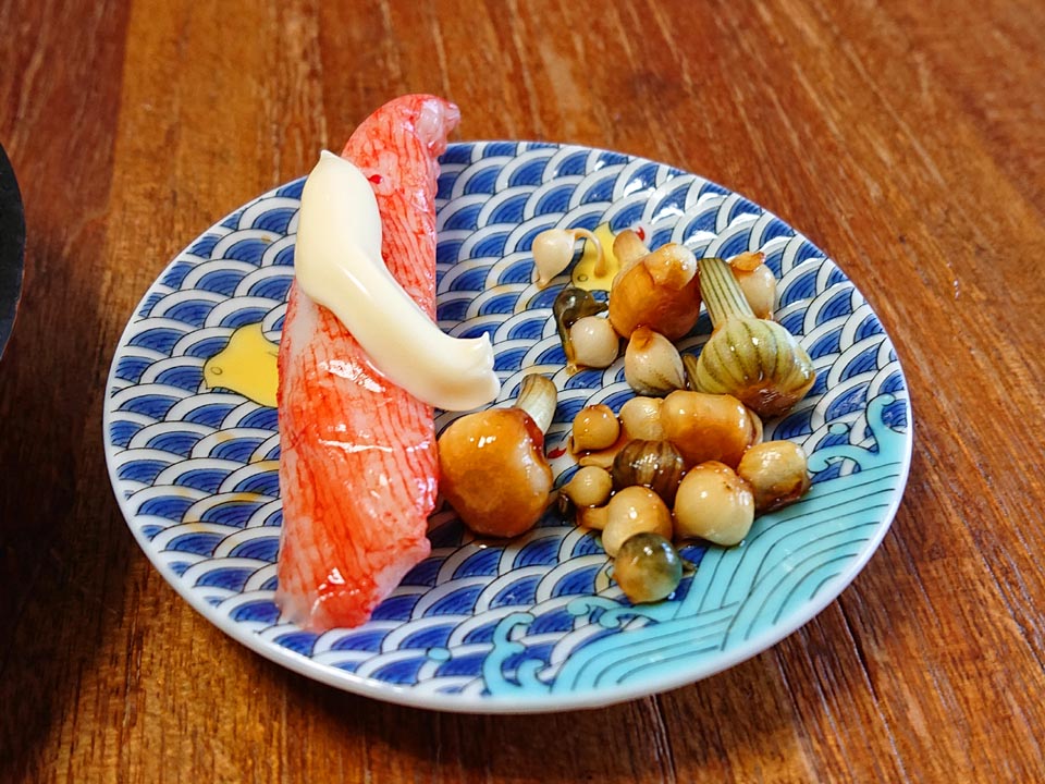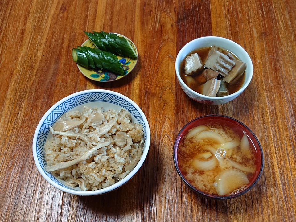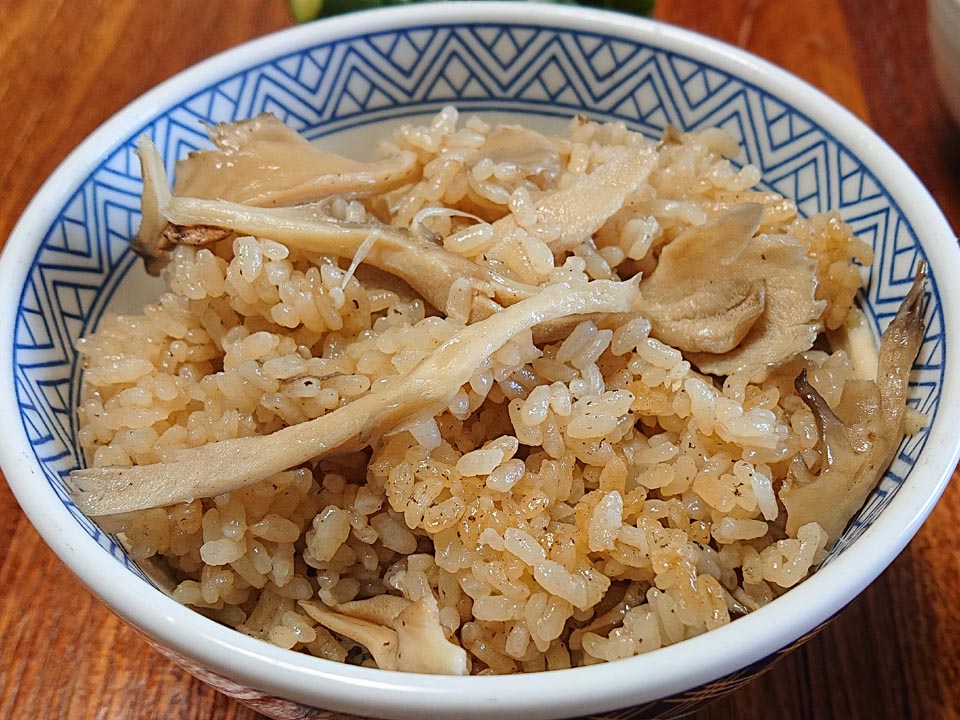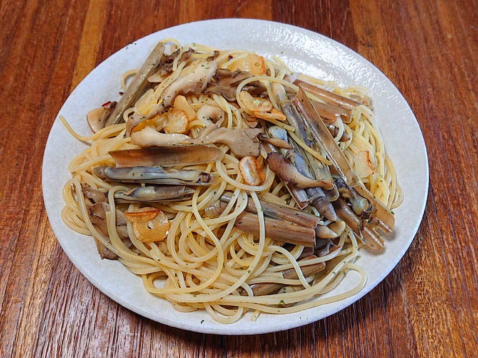 ディナーは舞茸増量でデラックスに、マテガイビアンコのアタマ♪