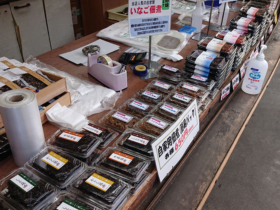 いつもの高橋水産にて、イナゴとざっこの佃煮をお買い上げ。