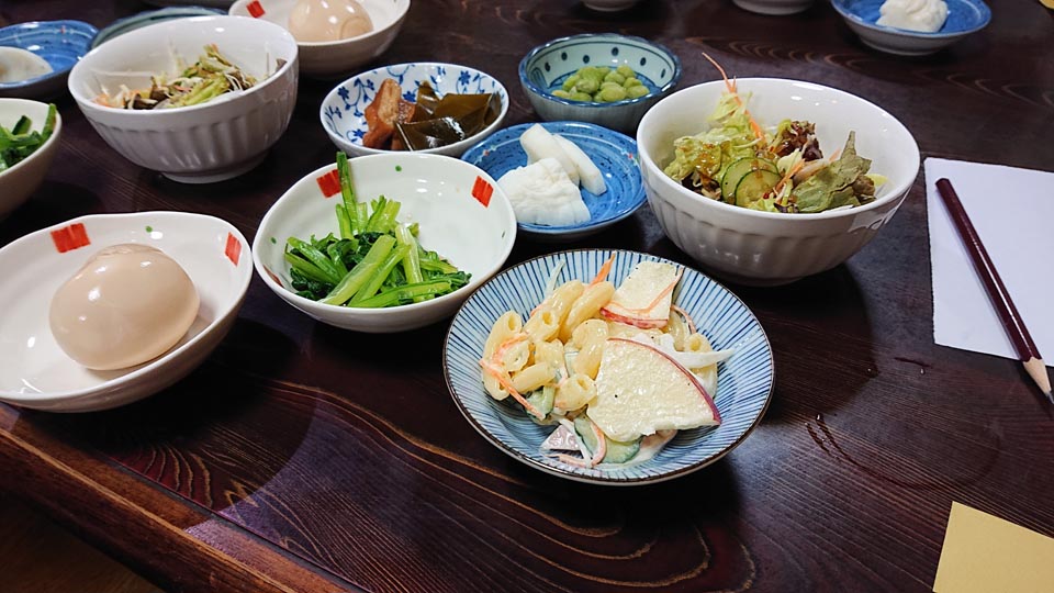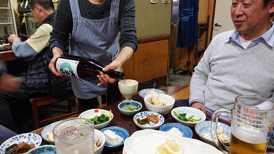 入店すると、既に呑み朋山羊氏がおり、小上がりの卓上にはおかずが沢山!