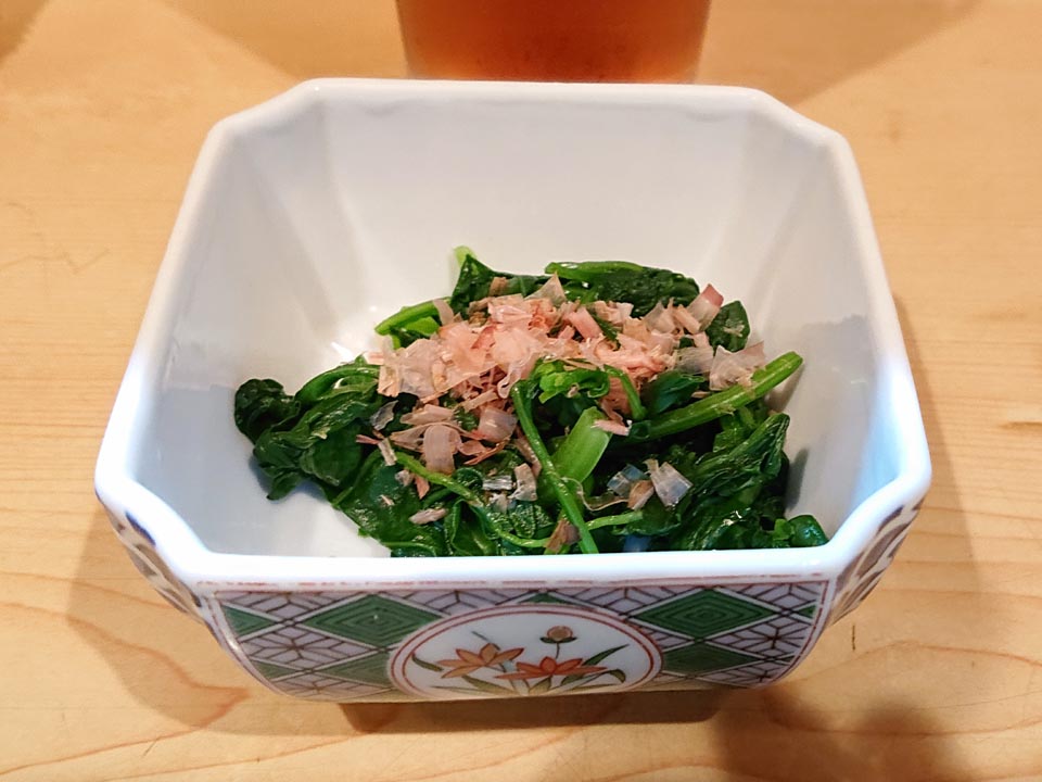 お通しはお浸し。