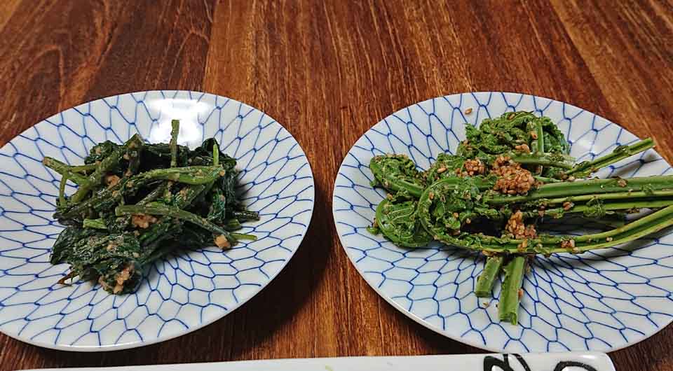 同時に頂いたコゴミは定番の胡麻和え、シドケは胡桃和えに初挑戦。